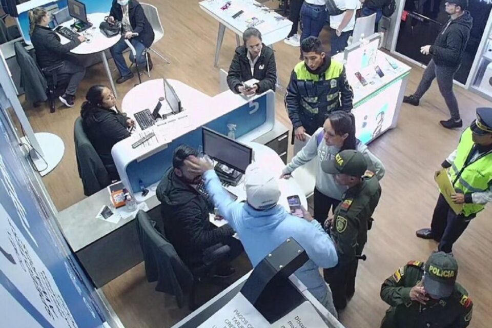 Foto de cliente agrediendo a empleados de Movistar que lo insultaron, en Bogota