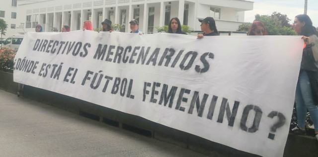 La protesta en la calle por la ausencia del equipo en la Liga Femenina.
