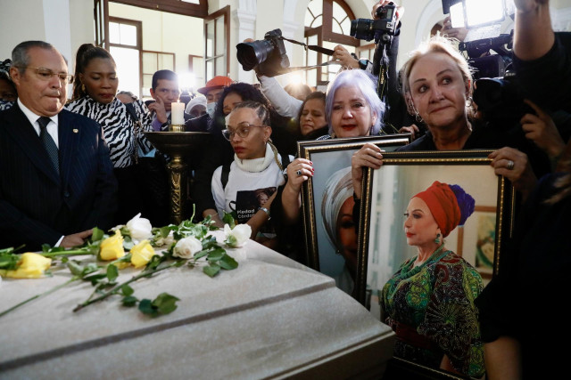 Miembros del Gobierno nacional, del Congreso, familiares y otras autoridades politicas velan este lunes a la senadora y activista por la paz Piedad Cordoba, fallecida este sabado, en un homenaje en el Capitolio Nacional.