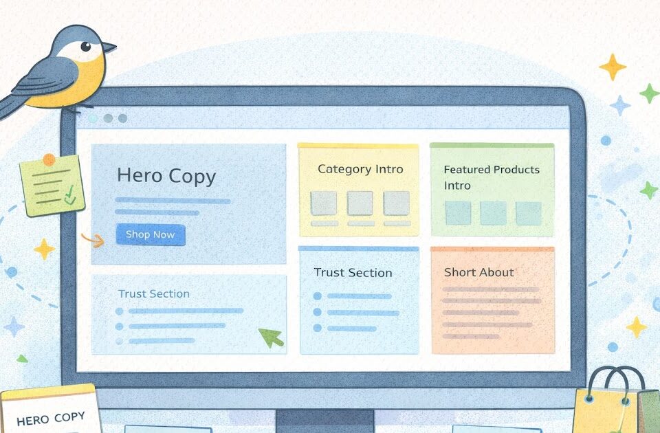 A lot of small store owners think of the homepage as a design project first. They focus on banners, colors, product tiles, and photos, then drop in a few lines of copy wherever there is room. The problem is that the words on the homepage often decide whether a new visitor understands the store in the first few seconds.