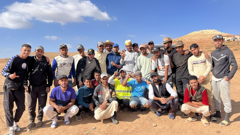 La hora del rezo llega y el iman de Tagadirt se sube a los puntos mas altos de lo que queda de pueblo. Su voz acalla el bullicio de los jovenes, energicos ante la visita de la prensa extranjera. El minarete y los altavoces ya no funcionan. Toca volver a un pasado remoto. En cuento acaba la llamada a orar, los chavales nos piden una foto de grupo. La juventud de la aldea se va añadiendo a un retrato de familia. De fondo, no hay nada mas que deserticas laderas o haimas. Le preguntamos a Abde si tienen electricidad para cargar los telefonos, le cambia el gesto y dice: “¿quieres hablar de los problemas o me enseñas la foto?” Esta claro, estan cansados de lamento y tragedia. Le envio la imagen y bromean, van a abrir una cuenta en Instagram o en Tinder para Tagadirte.